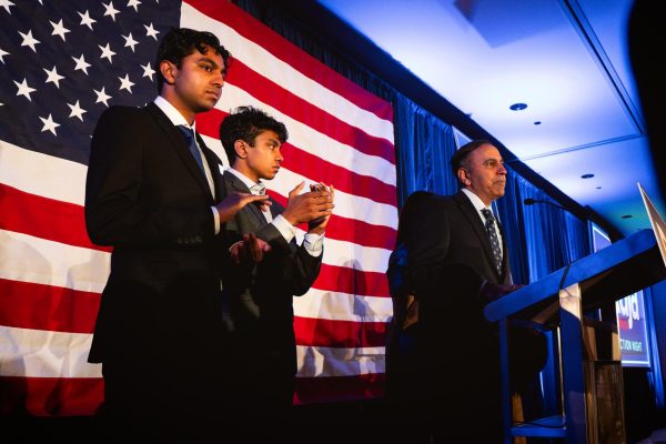 After the race was called for Stratton, Krishnamoorthi took the stage to give his concession speech. The crowd applauded and cheered his name.