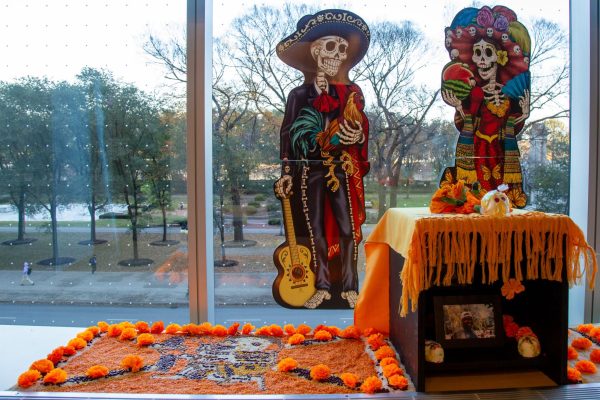 Photos and decorations are displayed for Dia de los Muertos in the Hive in the 618 S. Michigan building on Wednesday, Nov. 12, 2025. (