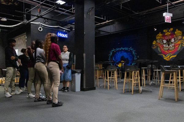 Inquiring students take a guided tour of The Haus at 623 S. Wabash Ave. on Thursday, Oct. 2, 2025. (