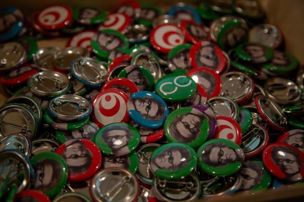 Assorted buttons are offered in the Hokin Gallery for the 135 Years in Art and Objects exhibition on the first floor of 623 S. Wabash Ave. on Thursday, Oct. 30, 2025. (